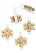 Deze houten sneeuwvlokjes zijn een leuke toevoeging aan uw cadeauverpakking. Met de knijper kunt u de sneeuwvlokjes gemakkelijk vastklemmen aan bijvoorbeeld lint of een strik op een cadeauverpakking. Verpakt per doos a 36 stuks, prijs per doos a 36 stuks